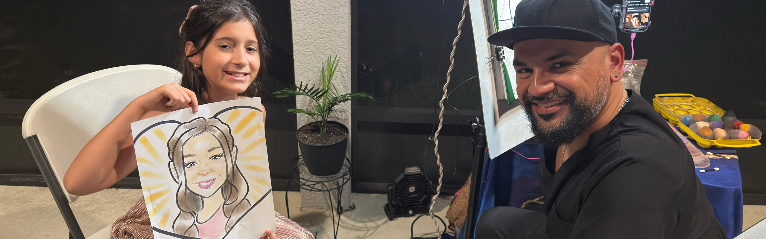 As a Disney-trained caricature artist, I learned how to draw quickly, engage guests of all ages, and turn every sketch into an experience.